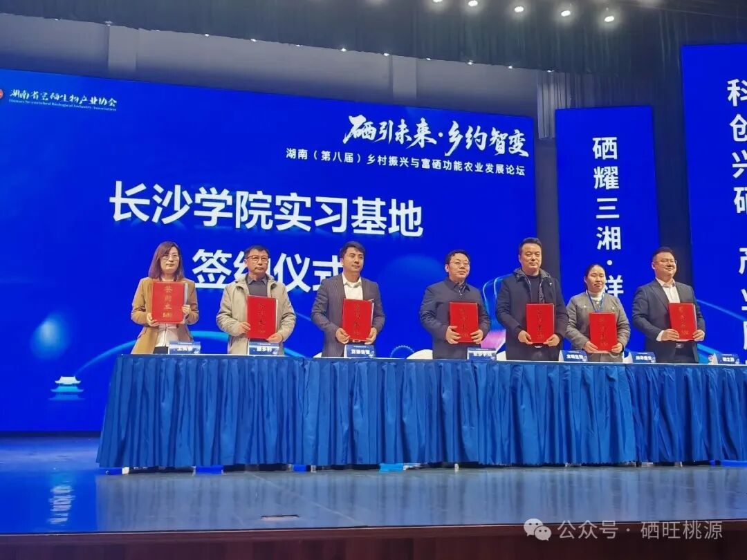 3 月 27 日——28 日,在湖南省农业农村厅指导下,由湖南省富硒生物产业协会、湖南省农村专业技术协会联合会共同主办,桃源县人民政府、新田县人民政府、苏仙区人民政府协办支持的以 “硒引未来・乡约智变” 为主题的湖南(第八届)乡村振兴与富硒功能农业发展论坛,在长沙学院隆重举行。桃源县人民政府、县农业农村局、县富硒产业协会、县富硒香米产销协会组团参会,全县 18 家富硒产业基地代表及富硒农业技术专家共同参会。